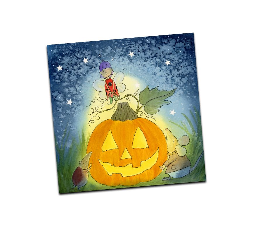 Another Hornbeam Hollow Halloween Card that is exclusive to my website and Etsy Shop. Featuring Pixie, Pygmy and Conker. The original illustration was created by hand using watercolours. The card is blank on the inside so it is an ideal card for friends and loved ones for any occasion - especially Halloween! The card has been produced on a high-quality cardstock and is supplied with a gummed envelope.